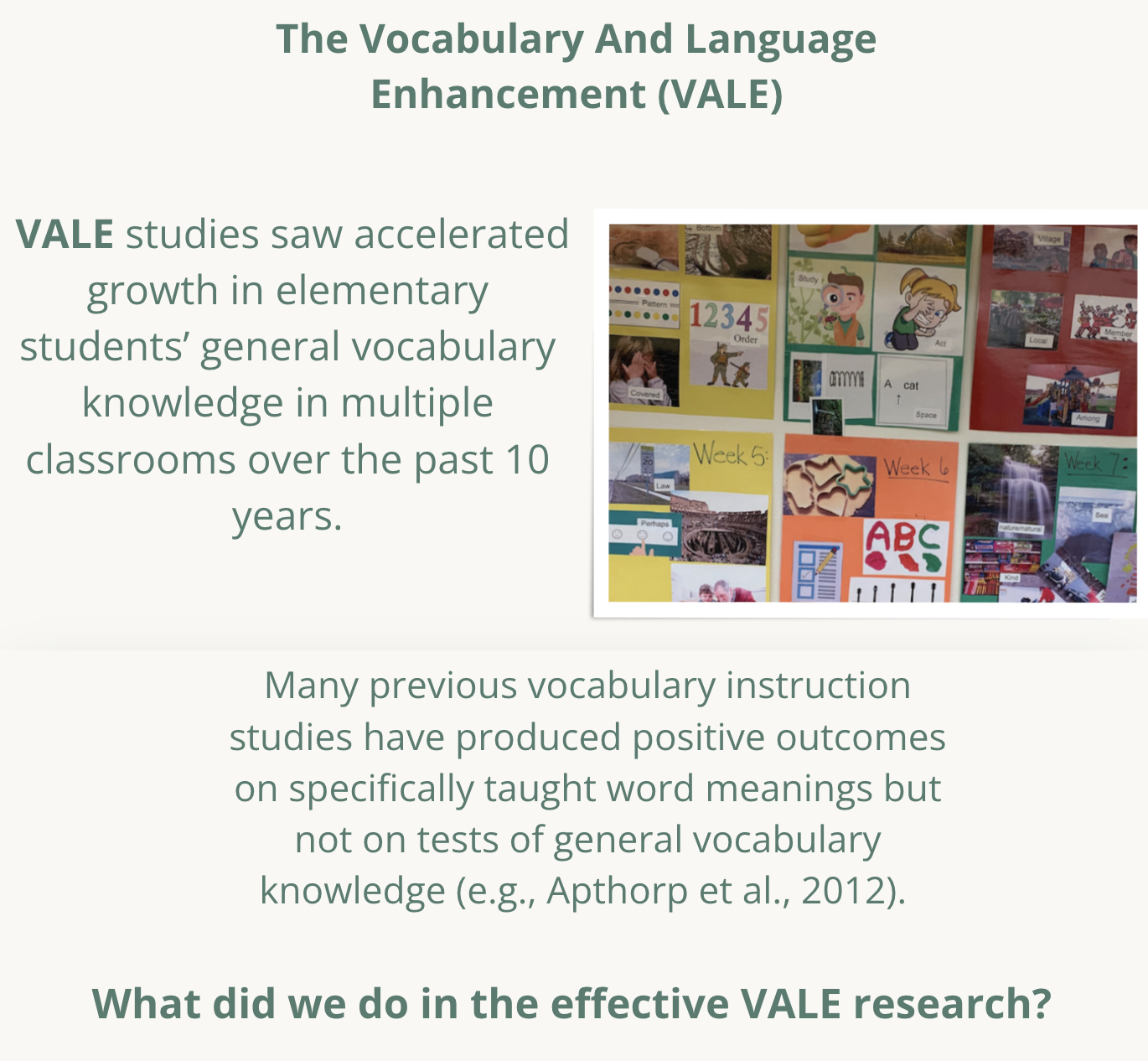 Hi, Hola, Bonjour! I’m Ellen Kappus and I’m a career language educator, teaching and coaching others to improve outcomes for English language learners for over 20 years. I’m passionate about providing teachers the tools to increase student vocabulary growth and close achievement gaps. Fluent in Spanish and French, I know how important vocabulary knowledge is for reading comprehension and communication. This website provides teachers, schools and districts evidence-based curricula from the VALE research which I conducted with Dr. Patrick Manyak.