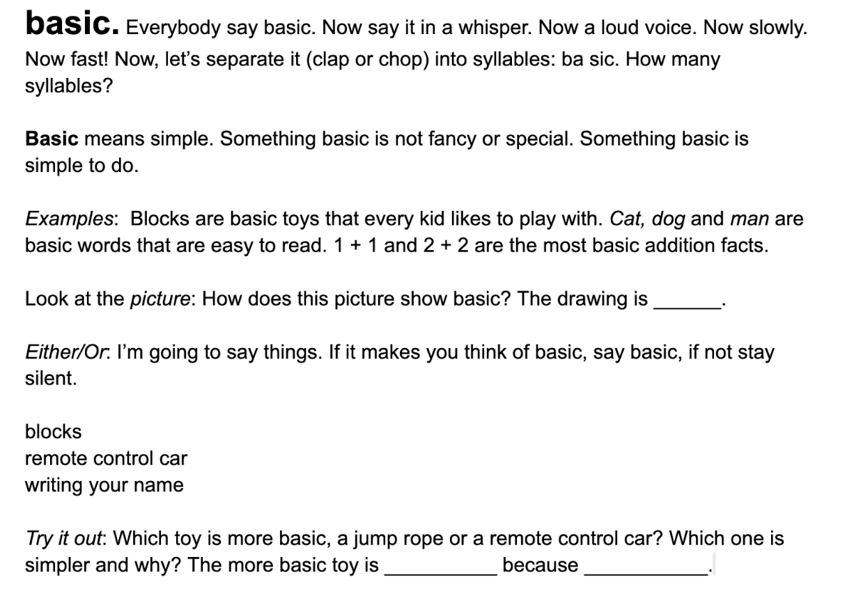 Example Lesson Script for Kindergarten First Grade Target Word Curriculum K-1